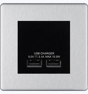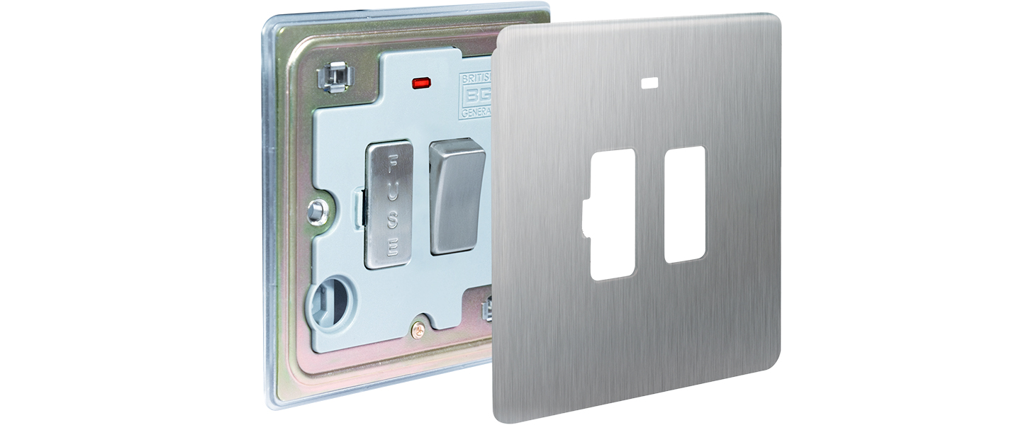 Our slimline screwless accessories are available in three stocked finishes: brushed steel, polished chrome and black nickel. Products within the range include standard switches and sockets, USB sockets, shaver sockets, dimmer switches, double pole switches and telephone and data outlets.
