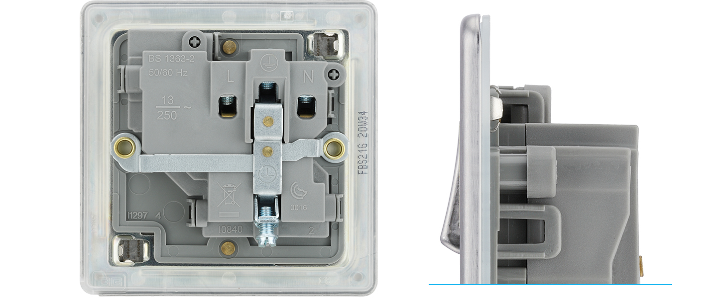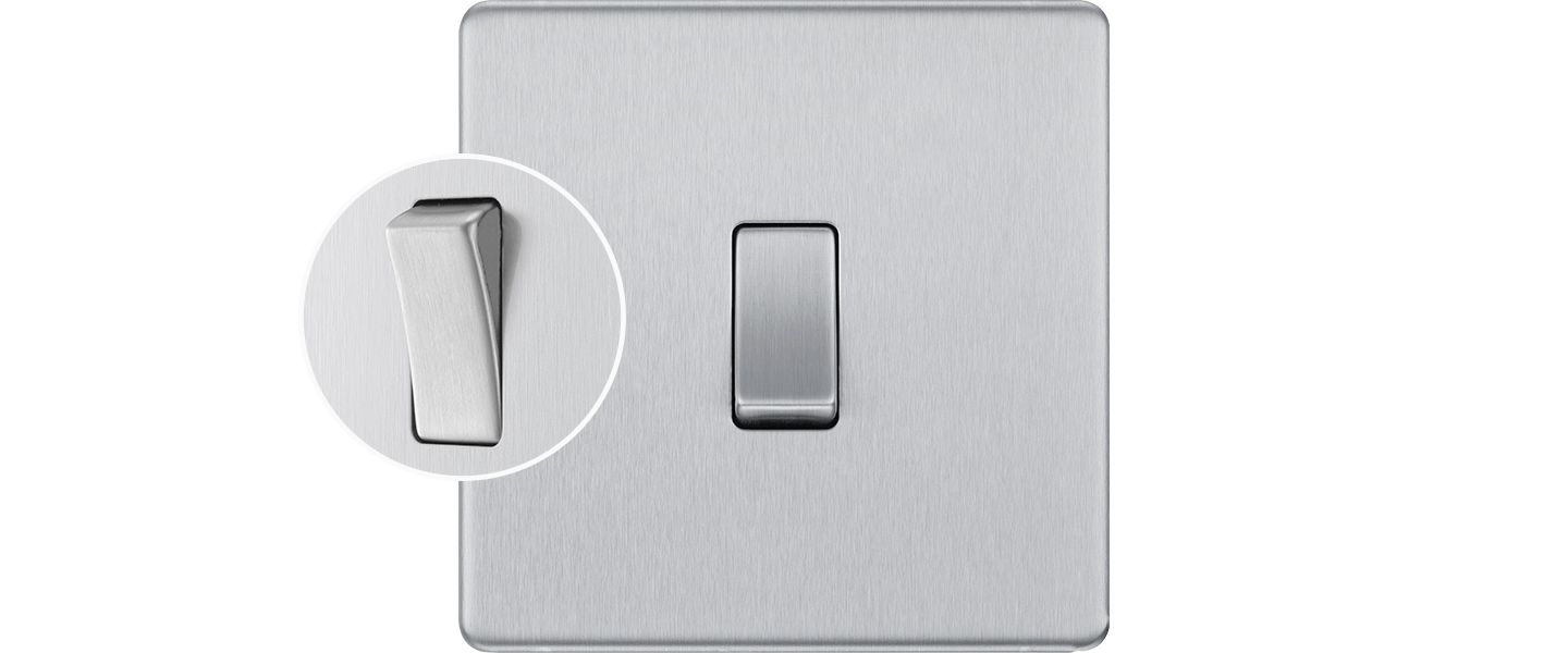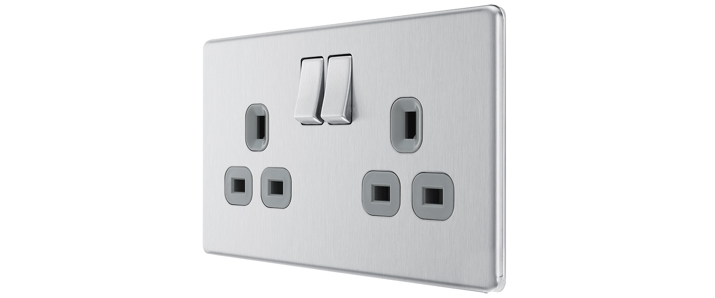 Our slimline screwless accessories are available in three stocked finishes: brushed steel, polished chrome and black nickel. Products within the range include standard switches and sockets, USB sockets, shaver sockets, dimmer switches, double pole switches and telephone and data outlets.