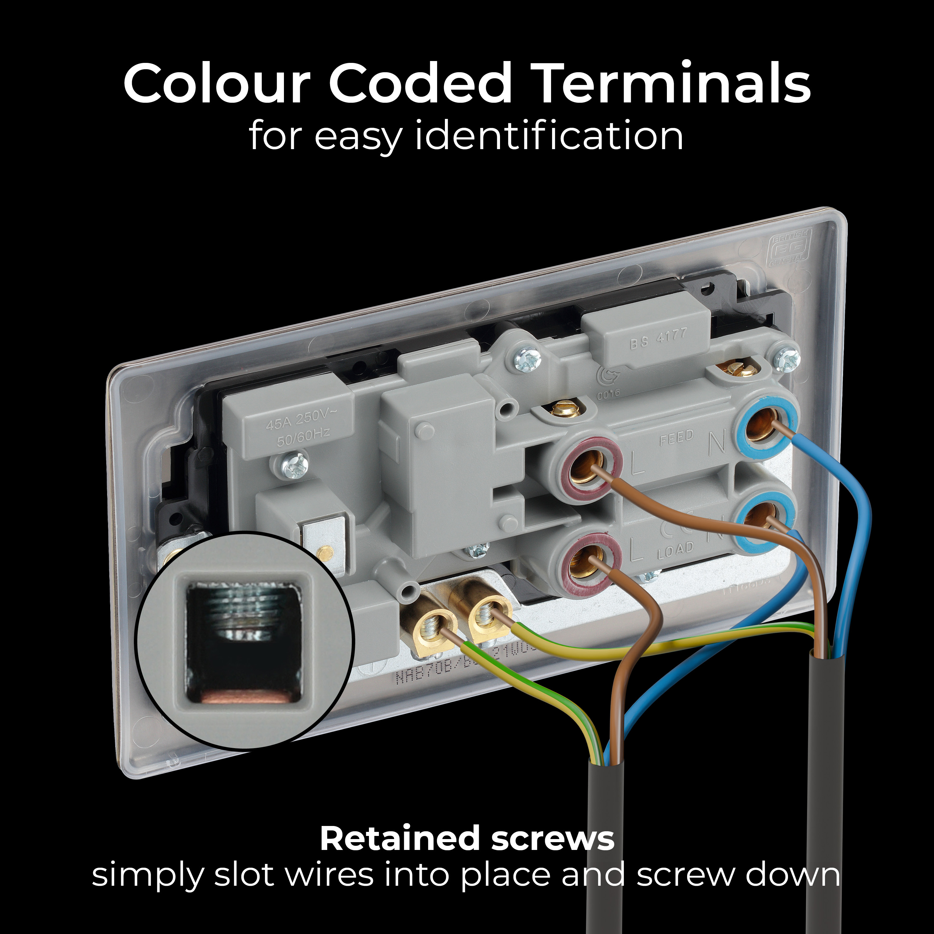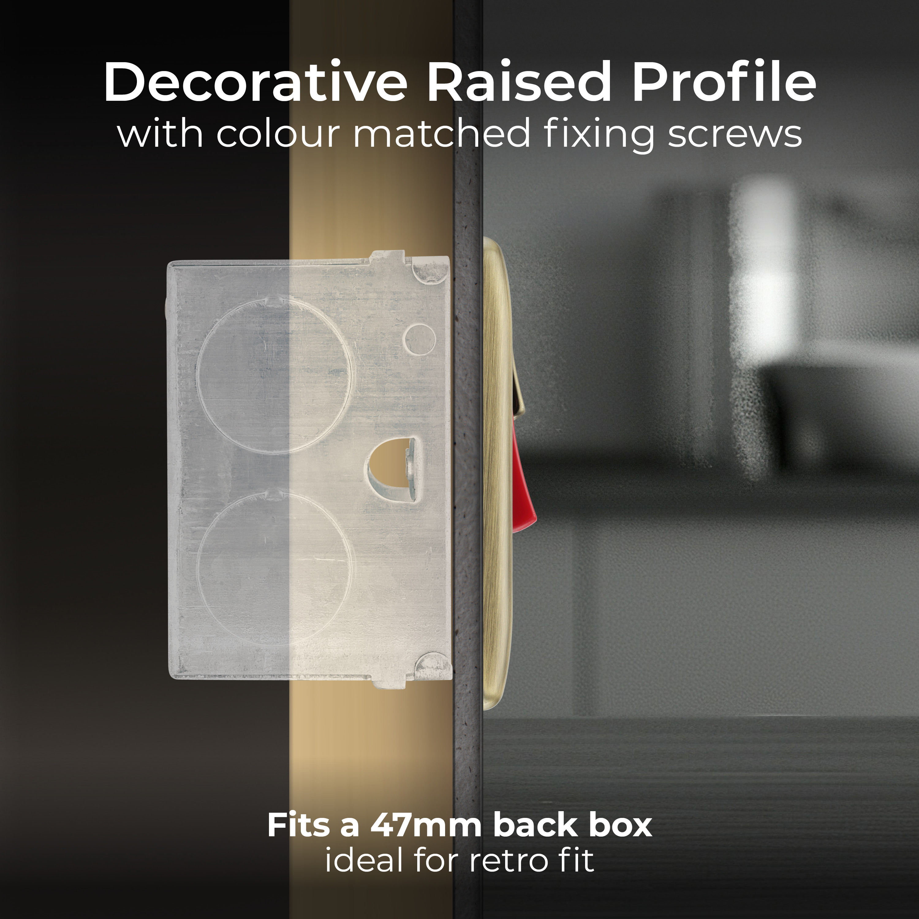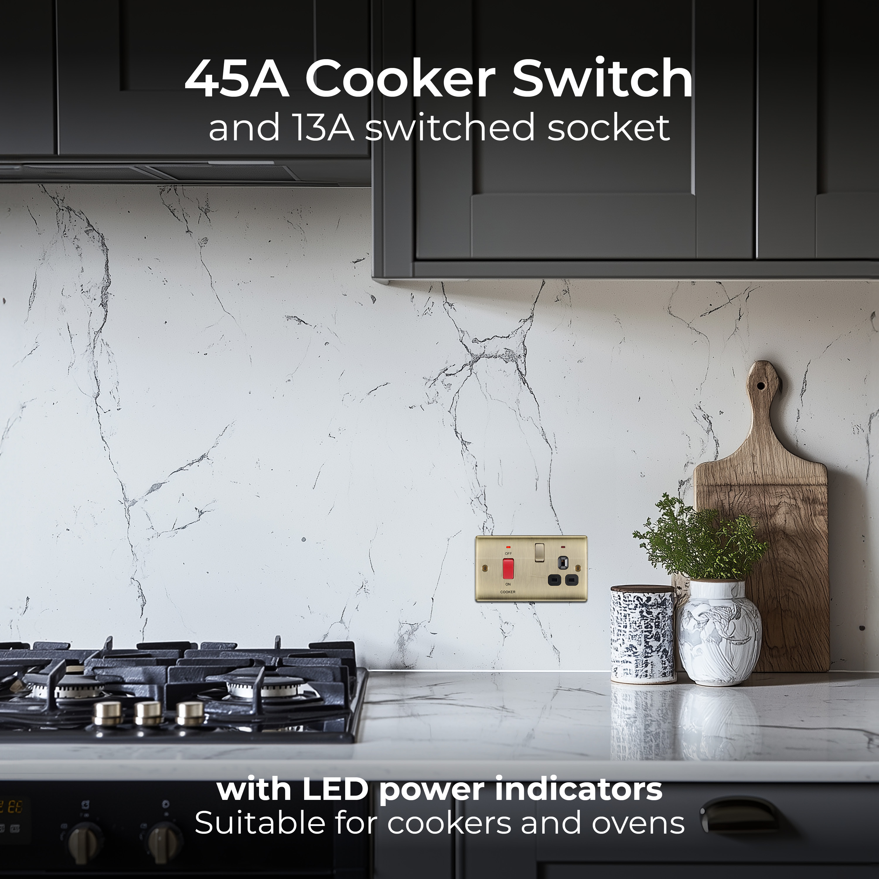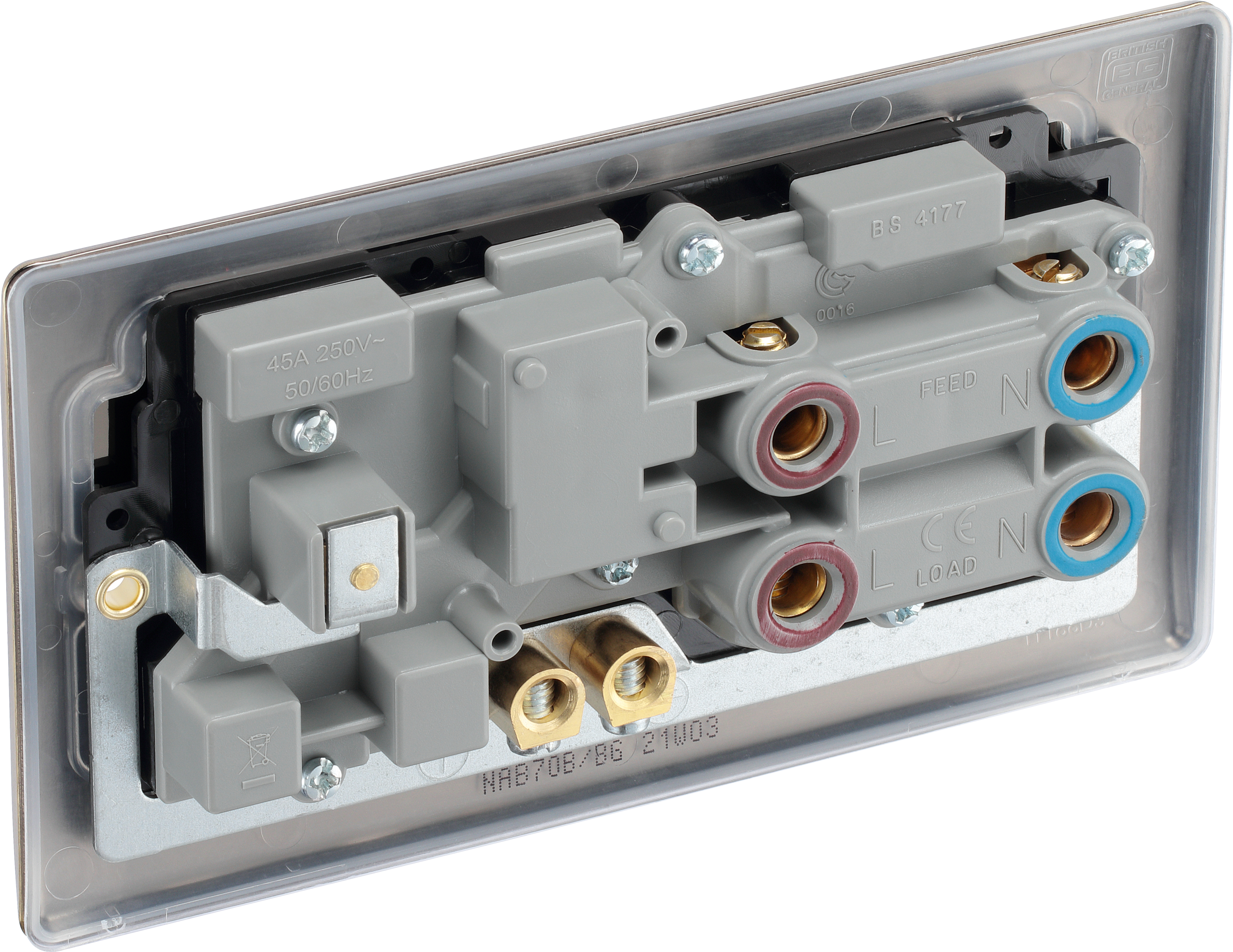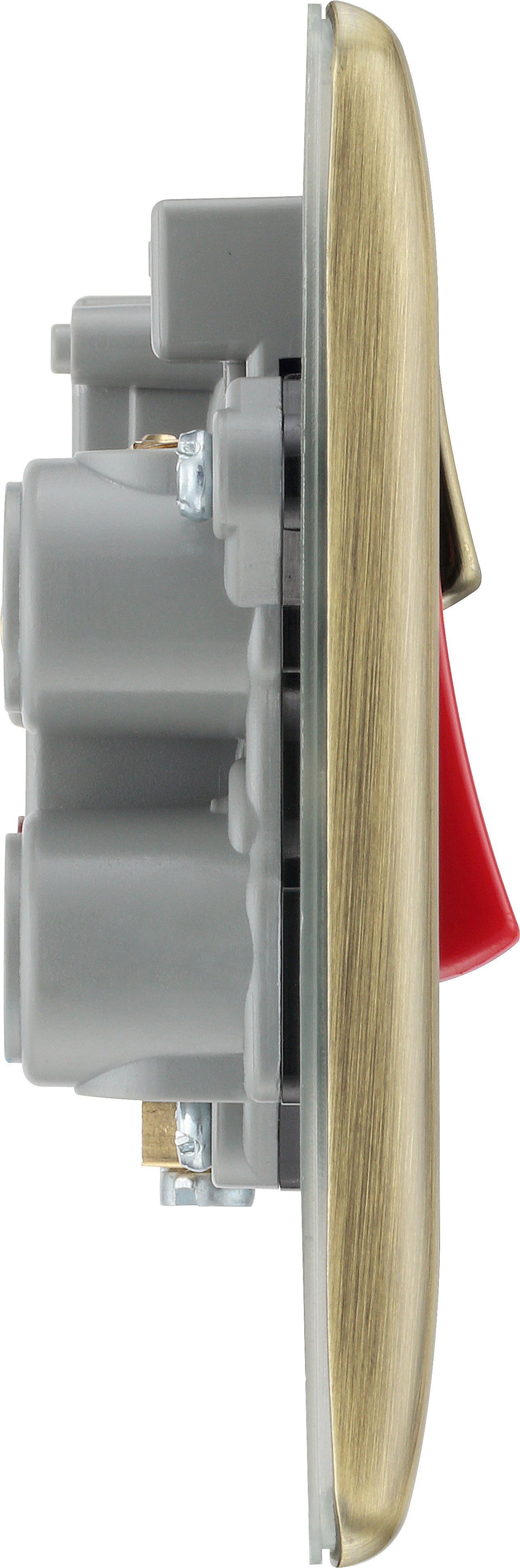 BG Nexus Metal, Antique Brass, 45A Cooker Control Unit With 13A Socket And LED Indicators, Black Inserts