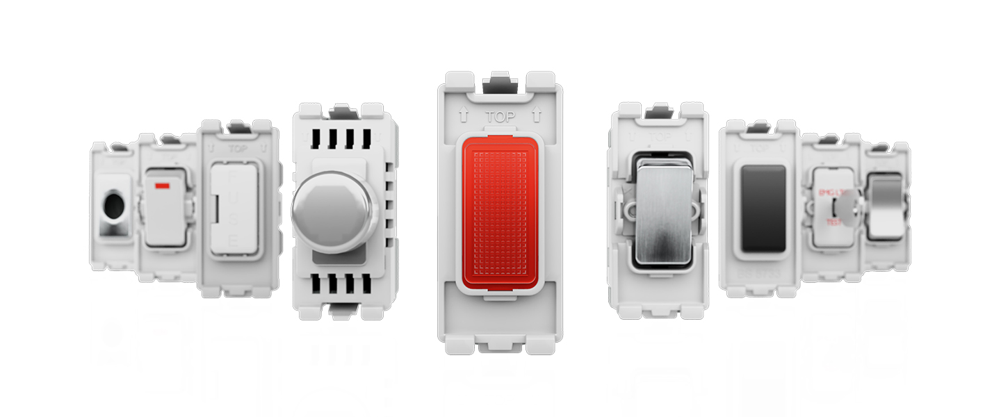 Ideal for domestic commercial and industrial applications, and allows you to build your own module configurations with a variety of combinations and finishes. The range benefits aesthetically from having no visible plastic around the switches. Grid is also designed to be easy to install with a cantilever module to frame installation and interchangeable rockers to provide flexibility.